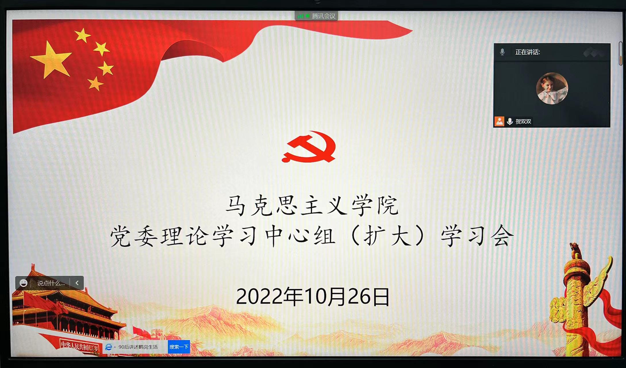 党委理论学习中心组(扩大)线上举行党的二十大精神集体学习。校党委副书记郭武军、学院班子成员、党委委员、党支部书记、教研室主任、科级干部、教师代表和学生代表参加了学习。学院党委书记刘驰主持会议。
