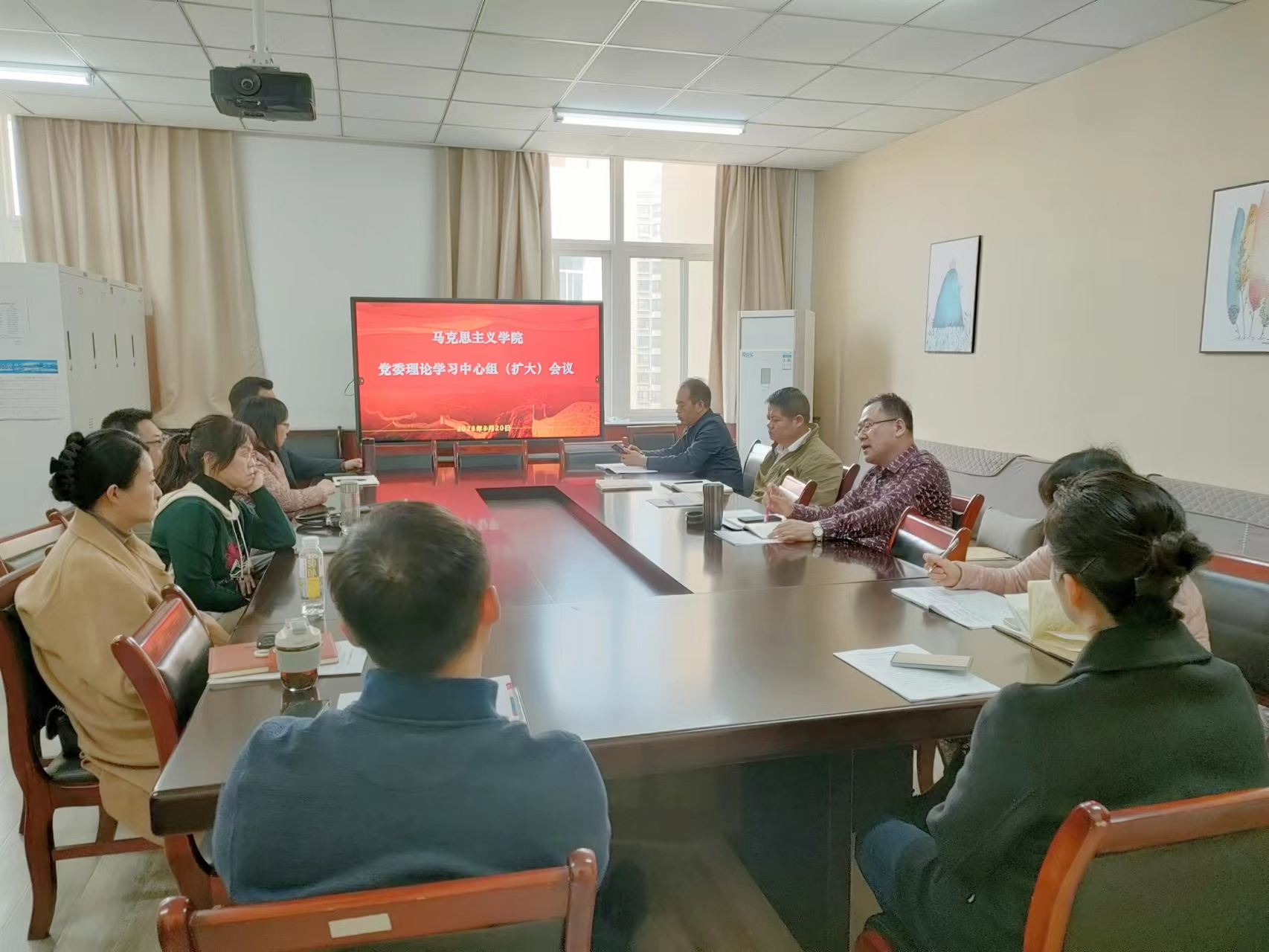 党委理论学习中心组(扩大)学习会在长安校区诚意楼五层会议室举行,学院班子成员、党委委员、党支部书记、教研室主任和导师组长参加集体学习,学院党委书记刘驰主持会议。