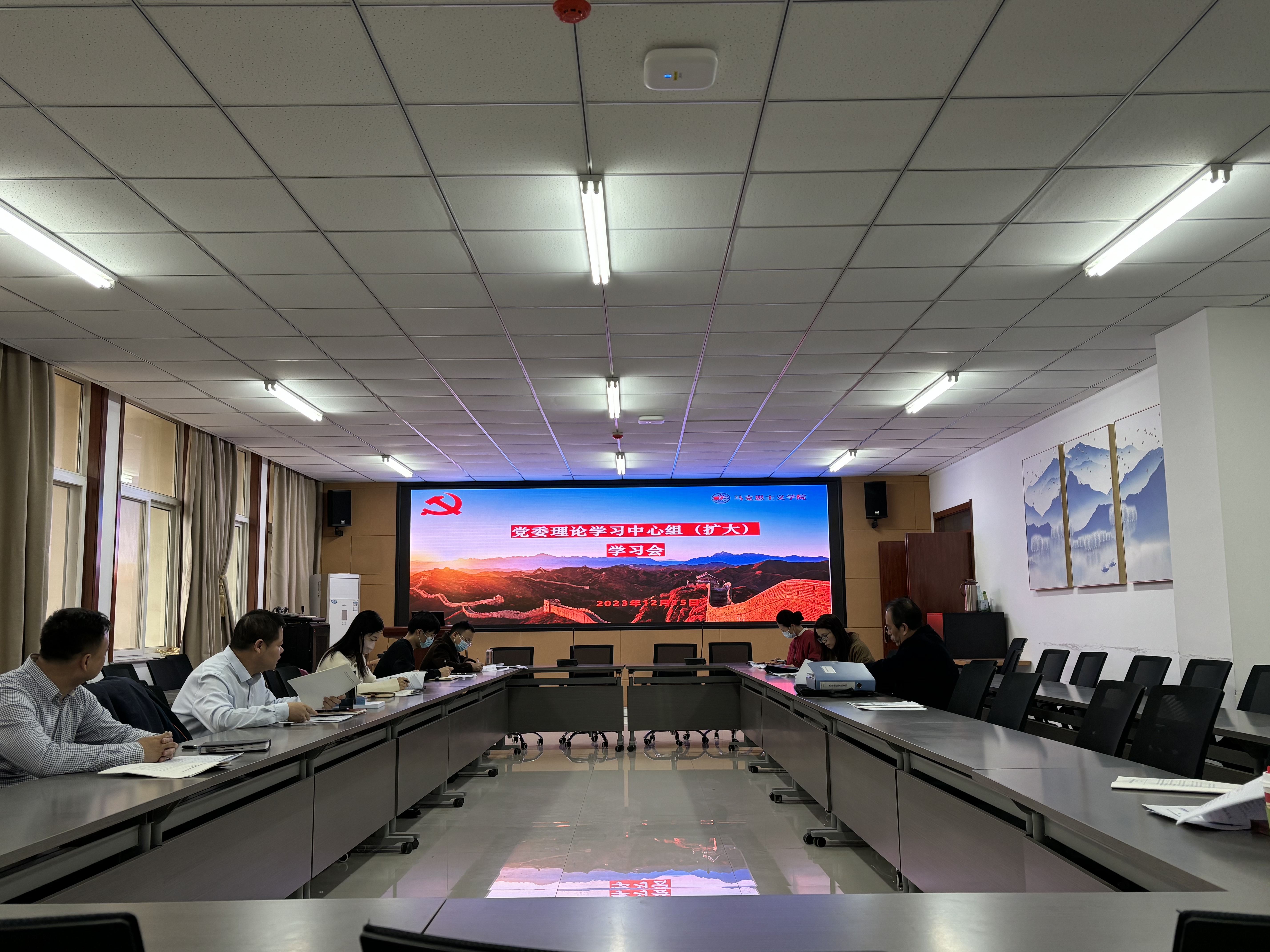 在学院会议室组织召开了党委理论学习中心组(扩大)学习会。学院领导班子、党委委员、教研室主任、党支部书记、科级干部参加会议。会议由学院党委书记刘驰主持。