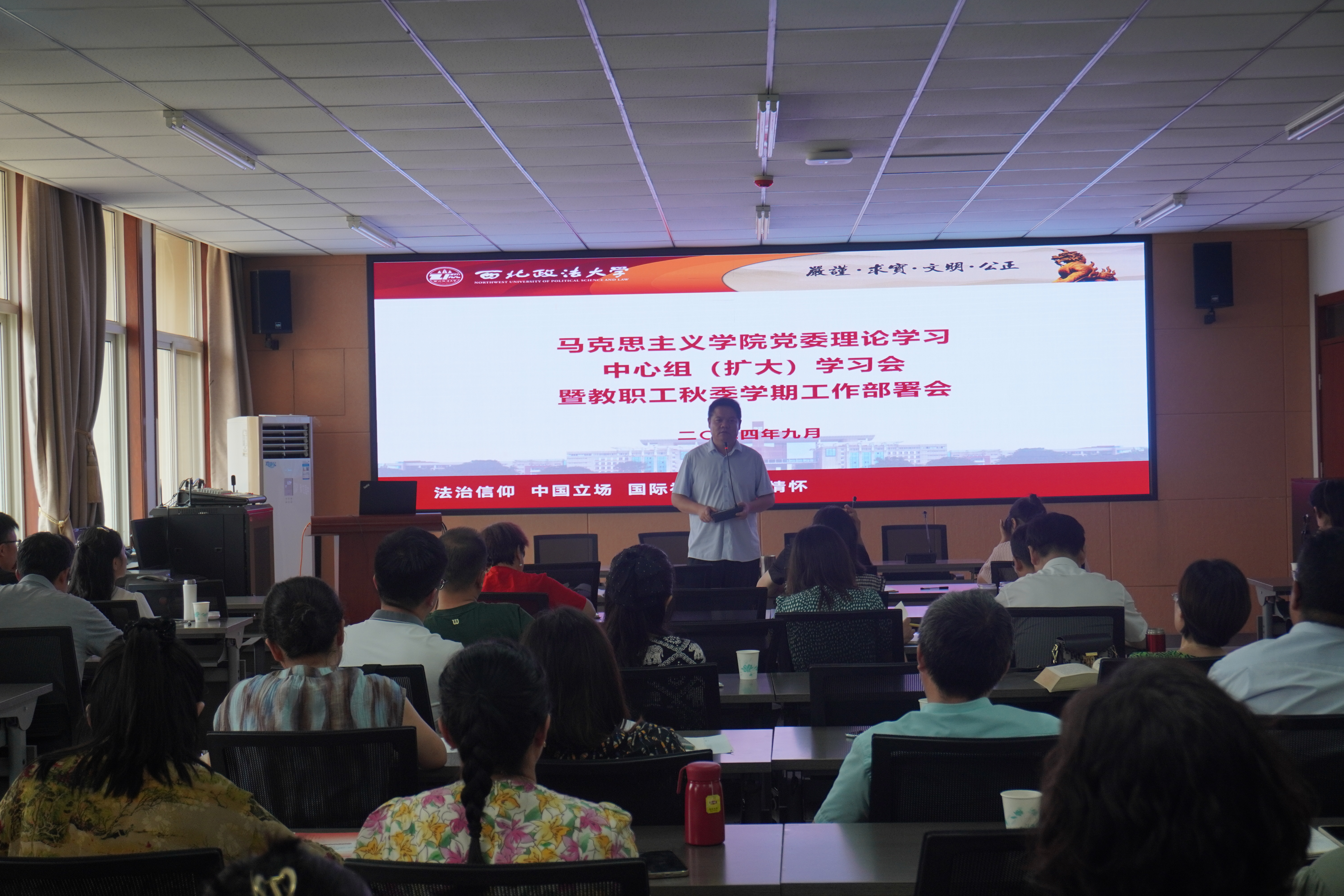 学院党委书记刘驰领读了党的二十届三中全会《决定》部分内容,传达了全省学校思政课建设座谈会精神。强调各位老师要认真做好二十届三中全会精神的“三进”工作,扎实开展教学改革。对标对表《陕西省重点笔趣阁 建设标准》,设定自身发展目标,在科学研究等各个方面持续发力,推动学院高质量发展。