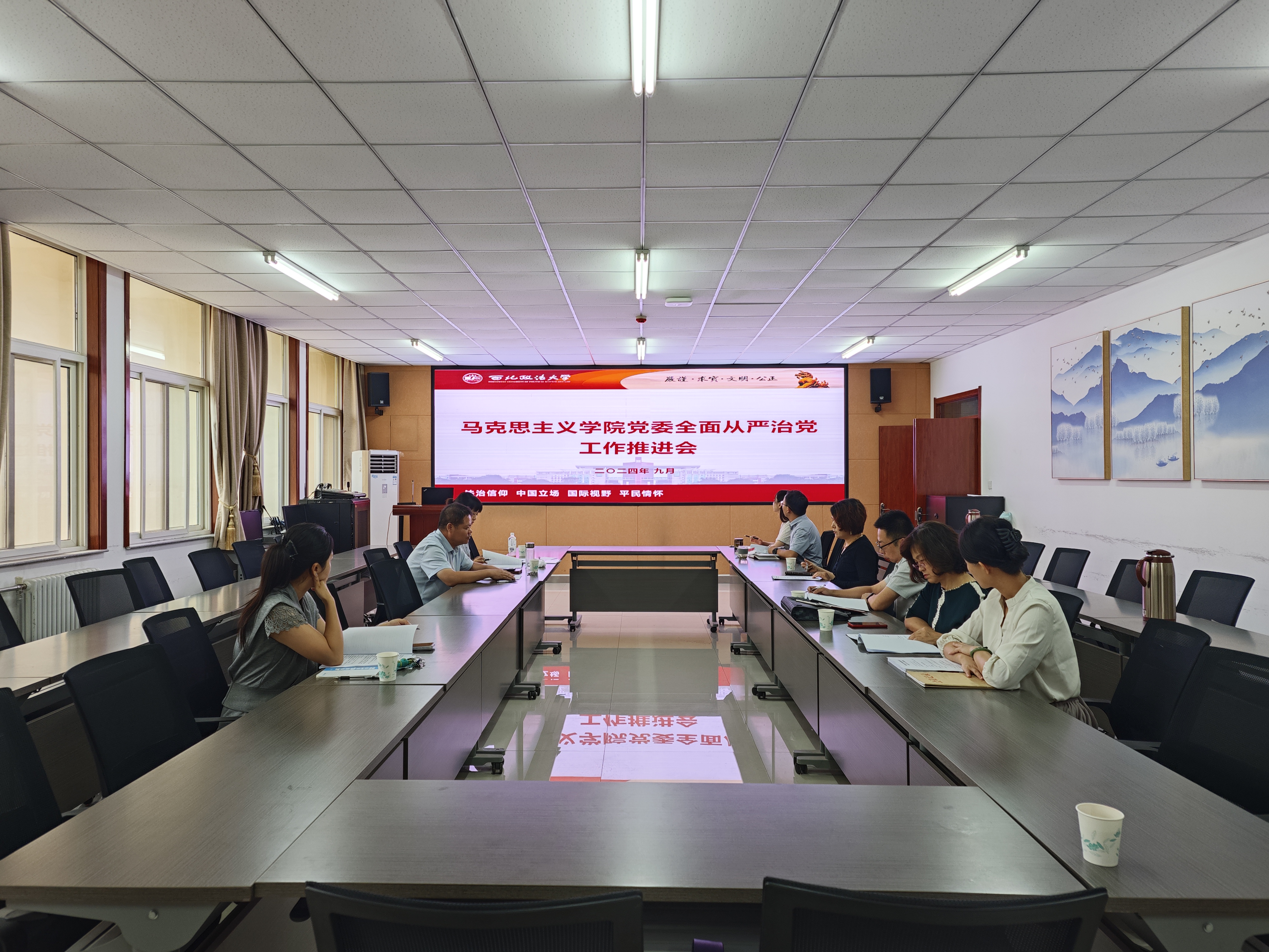 为进一步总结笔趣阁 党纪学习教育成果,推动全面从严治党向纵深发展。9月20日上午,学院在诚意楼五楼会议室召开全面从严治党工作推进会。学院党委委员、党支部书记、教研室主任以及教师代表参加了会议。会议由学院党委书记刘驰主持。