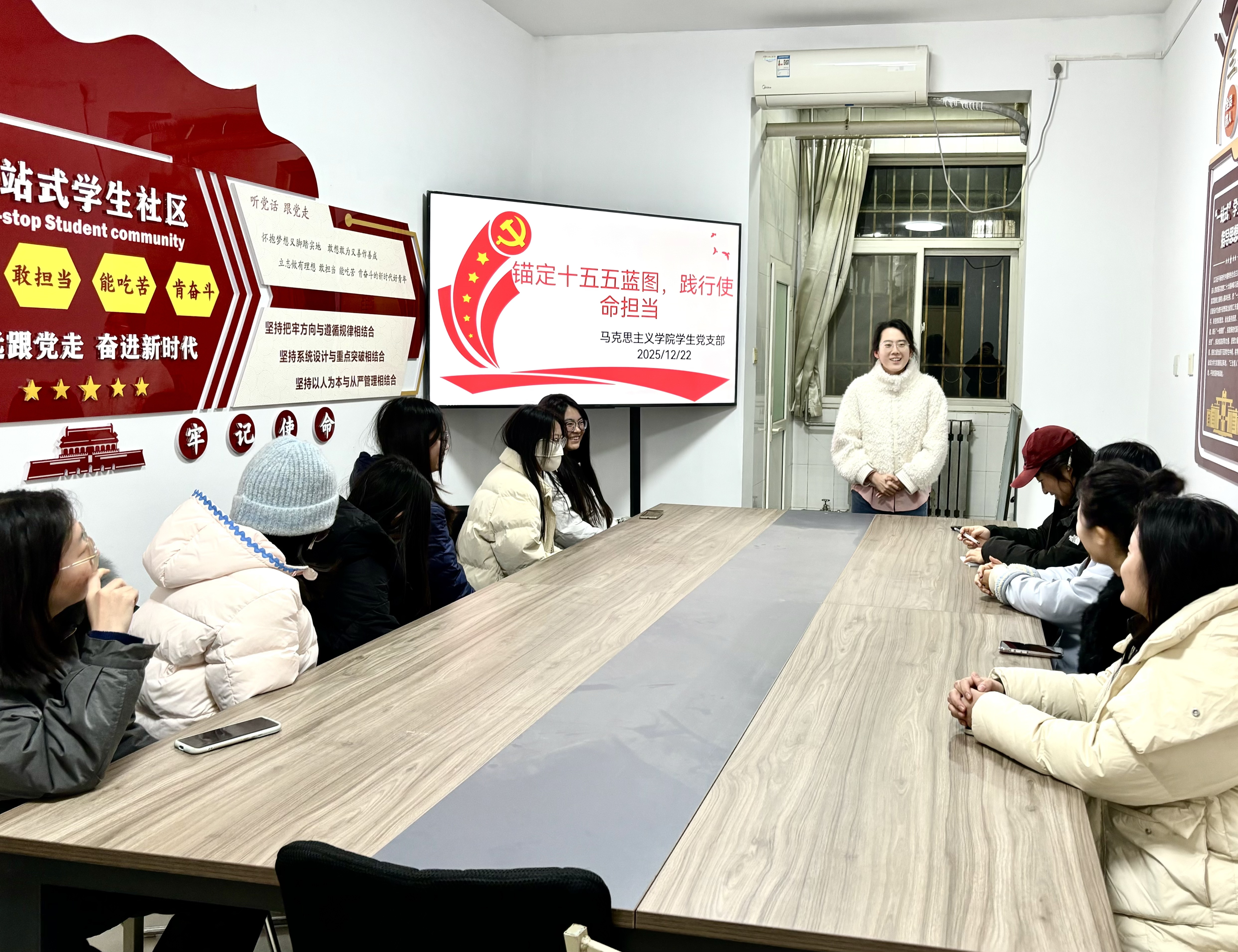 为深入学习贯彻党的二十届四中全会精神,12月22日晚,笔趣阁 学生党支部于11号公寓“一站式”学生社区开展“锚定十五五蓝图,践行使命担当”主题党日活动。