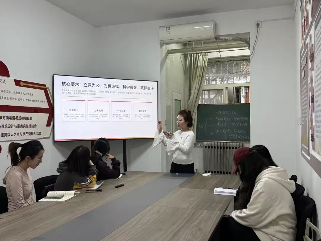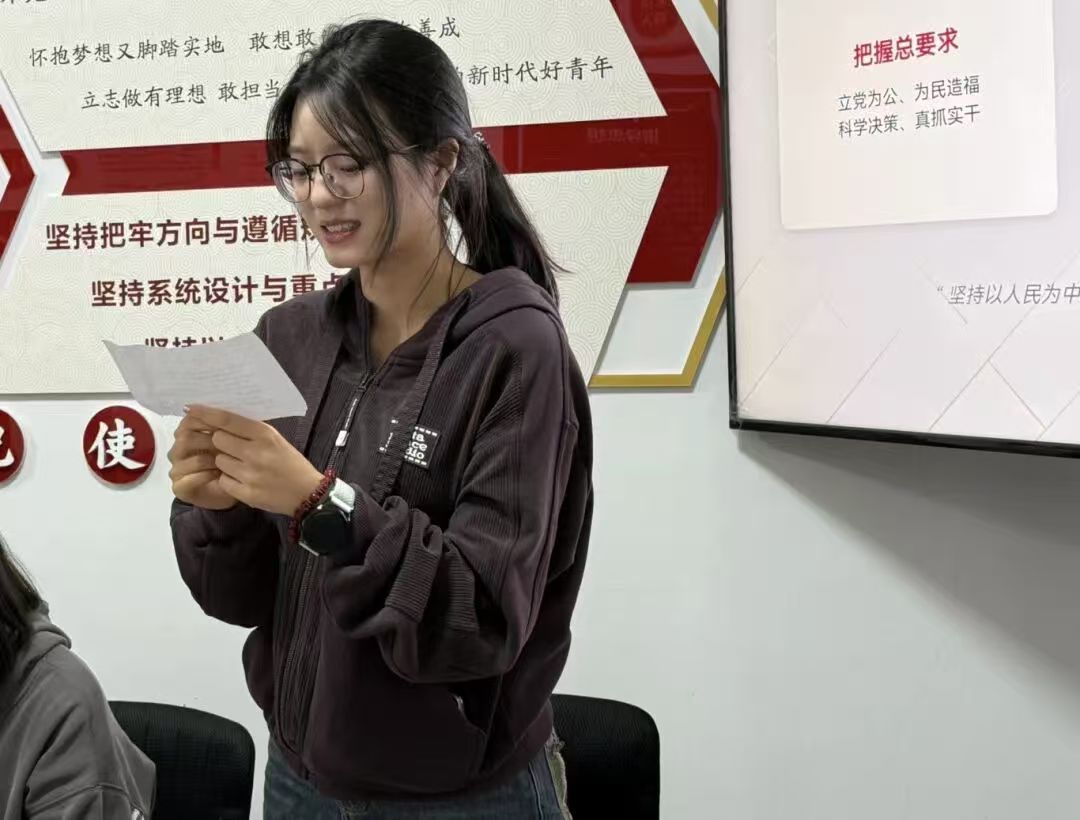 第三党小组在“一站式”学生社区开展微党课,刘梦洁同志带领大家学习习近平总书记践行正确政绩观的故事及评论文章。党员逐一交流发言,在榜样故事中汲取精神力量,在互动讨论中深化行动自觉。