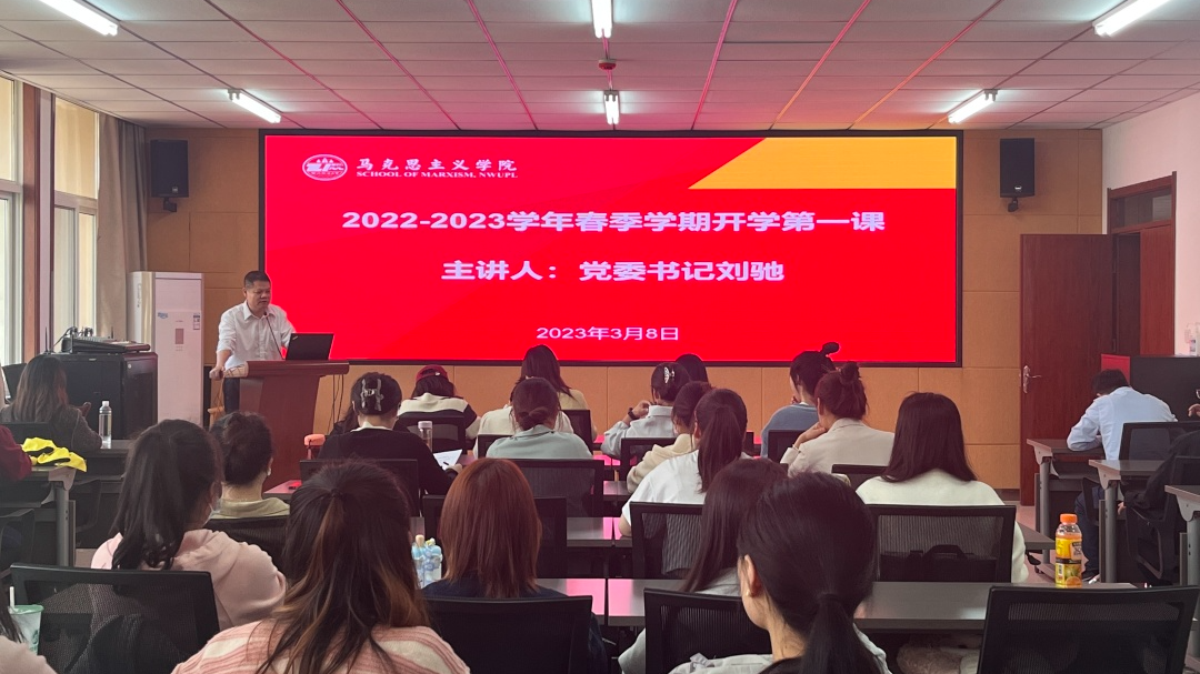 在长安校区诚意楼五层会议室举行了“开学第一课”活动,学院党委书记刘驰主讲了2022-2023学年春季学期开学第一课。学生党支部书记徐鹏以及2021级、2022级全体研究生参与了学习。