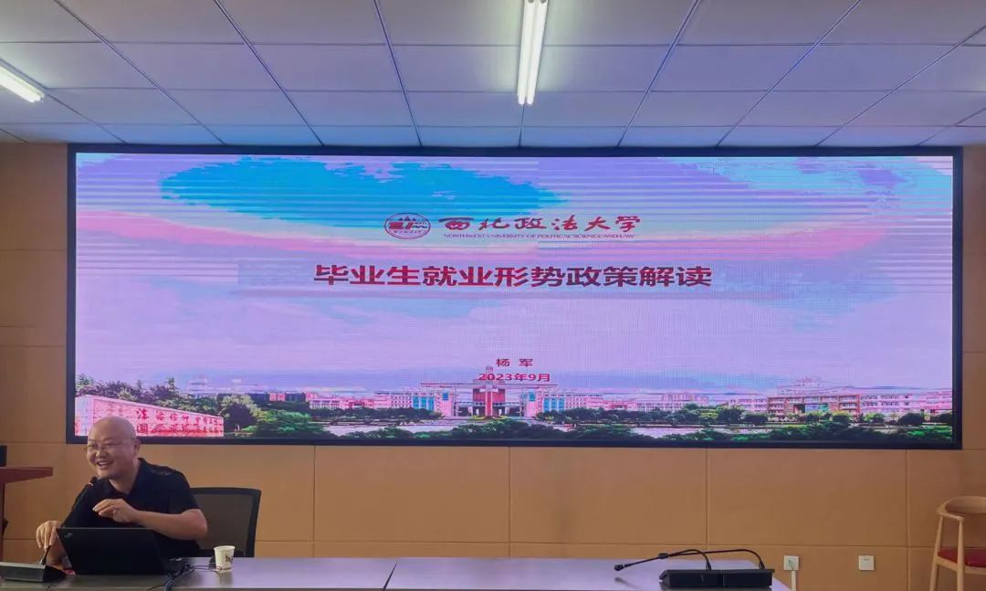 特邀学校招生就业指导中心杨军主任就“毕业生就业形势政策解读”进行专题讲座。学生党支部书记徐鹏、团总支书记刘栩源和全体研究生参加本次了讲座。