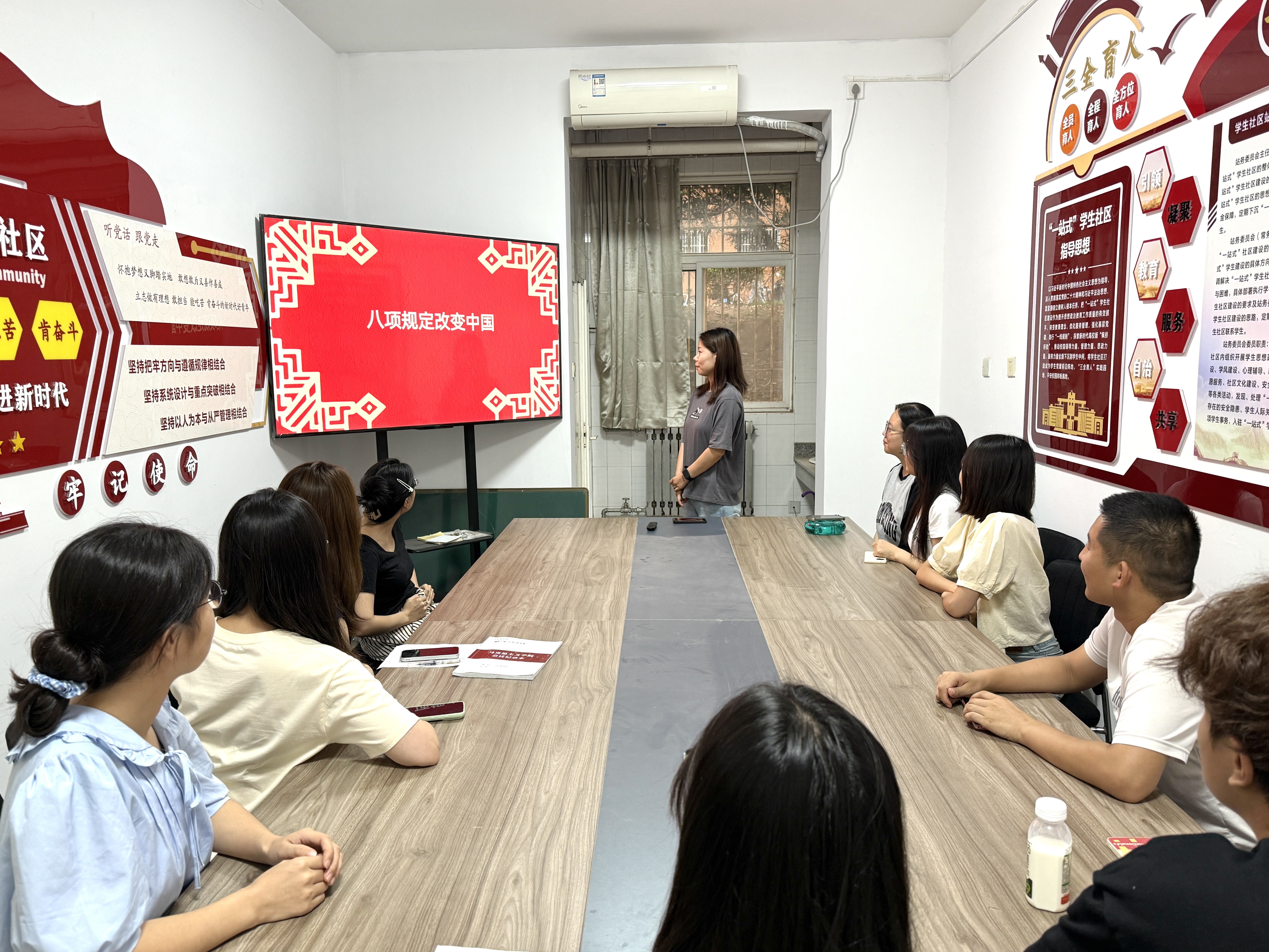 为推动深入贯彻中央八项规定精神学习教育走深走实,强化党员纪律意识,深化作风建设,6月25日晚,笔趣阁 学生党支部于11号公寓“一站式”学生社区开展“悟八规初心 践作风使命”主题党日活动。