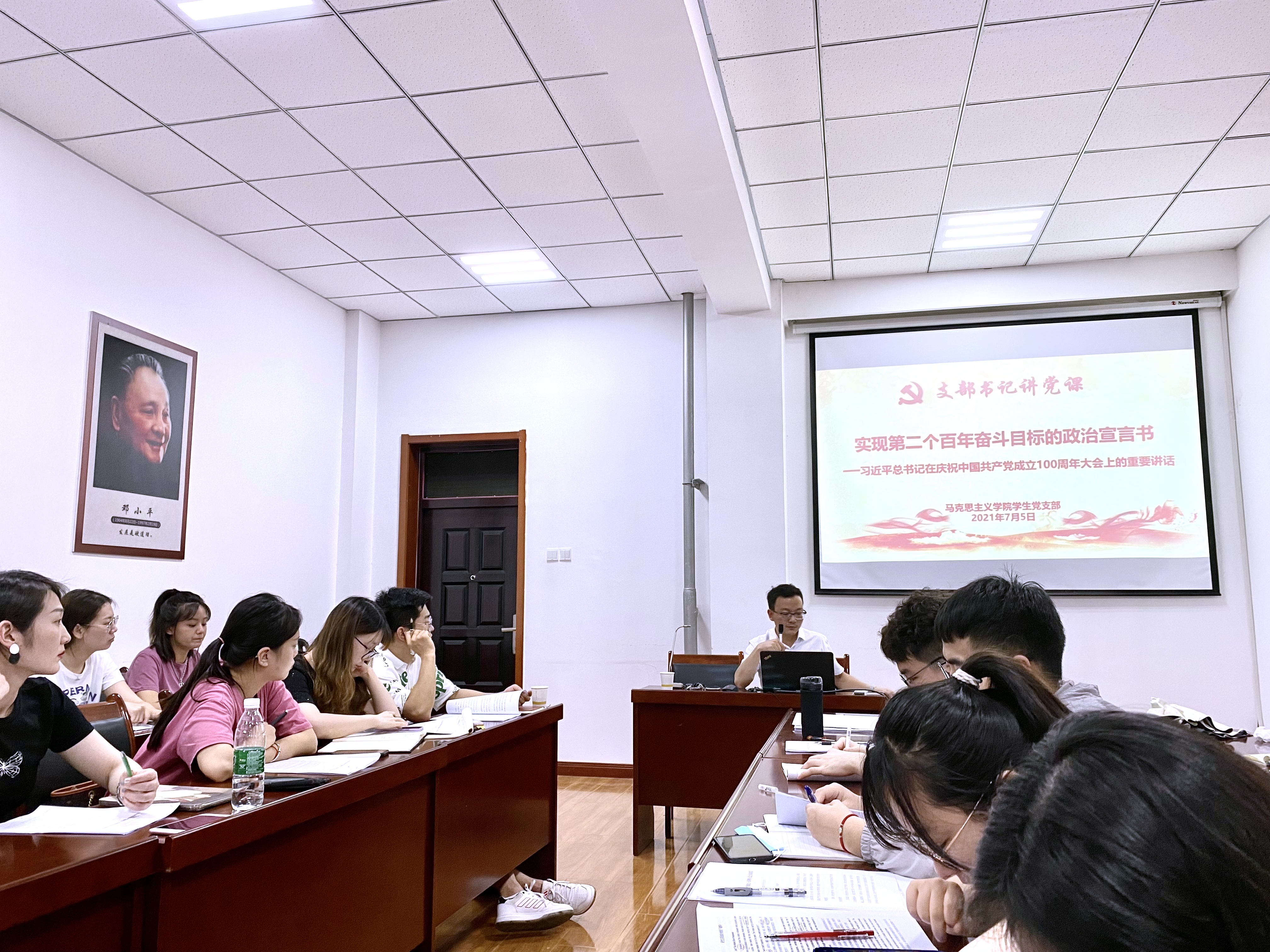 7月5日晚19时,笔趣阁 学生党支部在雁塔校区文化与价值哲学研究院会议室召开了“支部书记讲党课——学习习近平总书记在庆祝中国共产党成立100周年大会上的重要讲话”专题学习会。学生党支部全体成员和部分入党积极分子参加了本次会议。会议由学院组织员、学生党支部书记徐鹏主持。