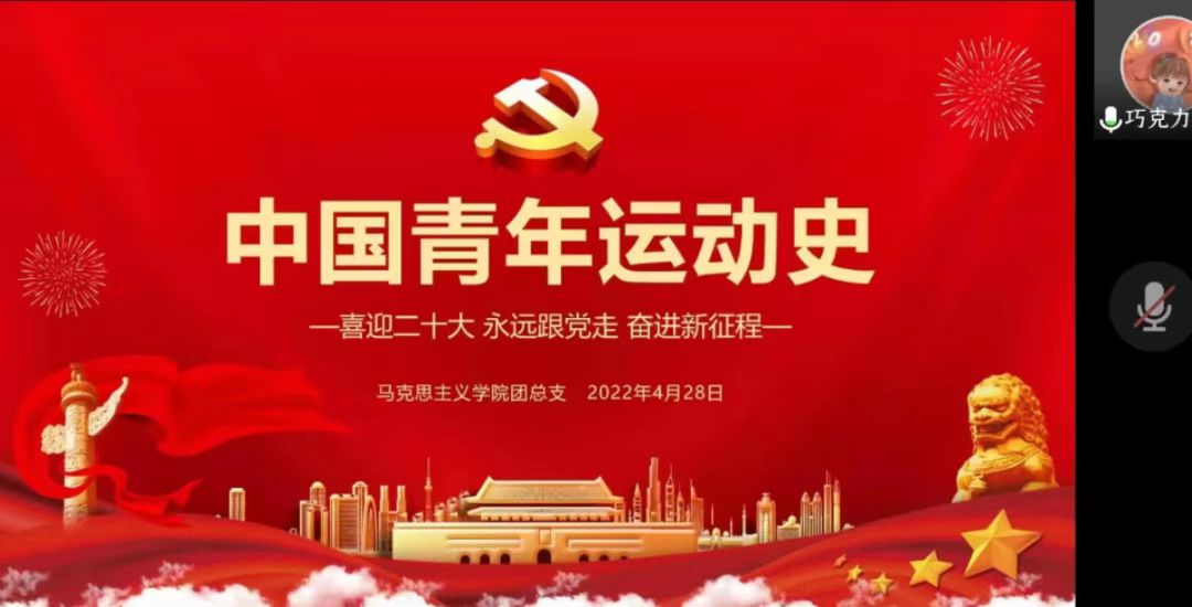 为庆祝建团100周年,团结引领广大青年团员永远跟党走、奋进新征程,以实际行动迎接党的二十大胜利召开,4月28日19时,马克思主义团总支于线上开展“中国青年运动史”专题团课学习活动,带领青年走进百年团史,感悟青年担当。本次主题团课由2020级团支部书记王心彤主讲,学院全体青年团员参与学习。