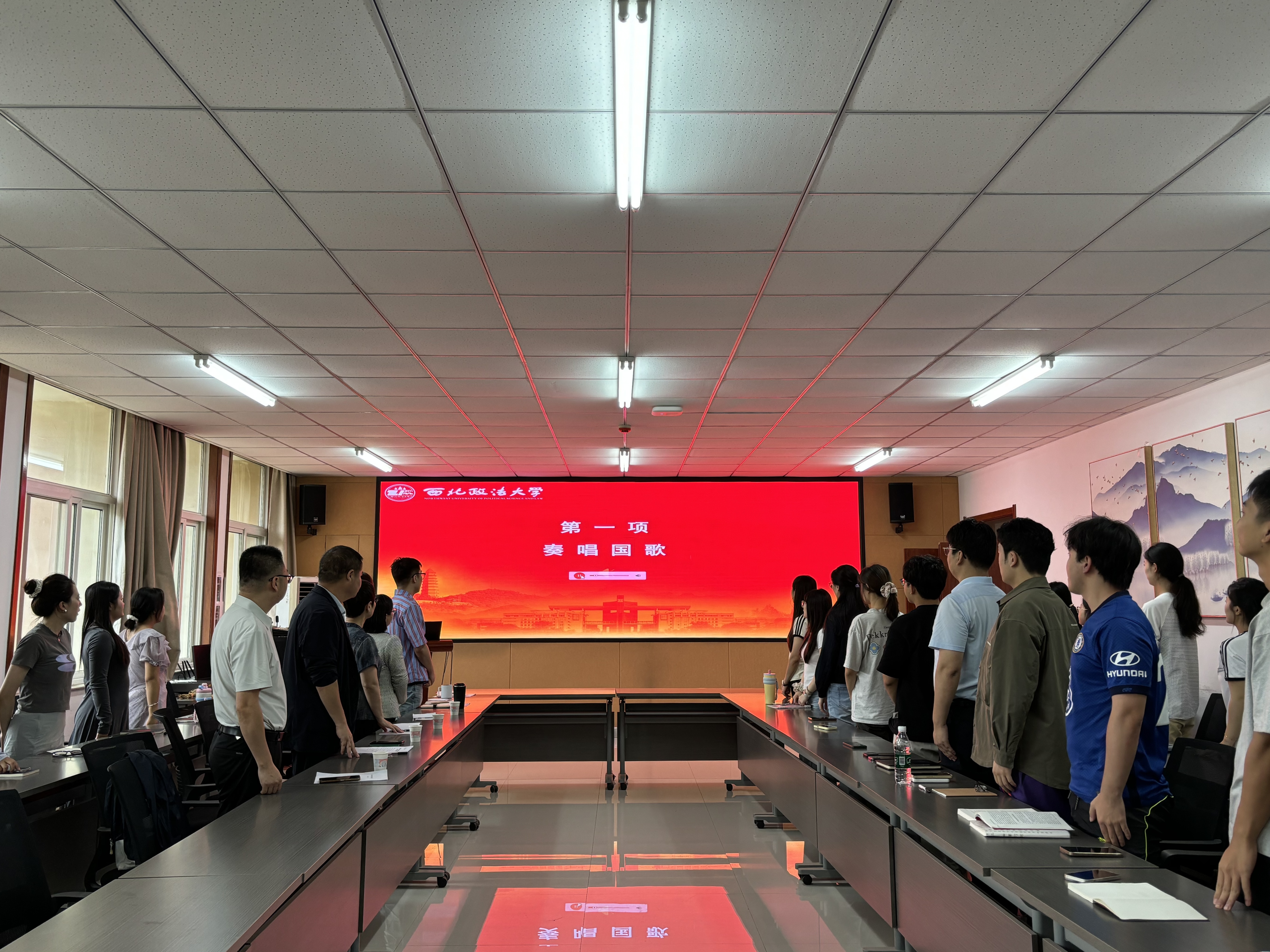 典礼第一项,全体人员肃立奏唱国歌。