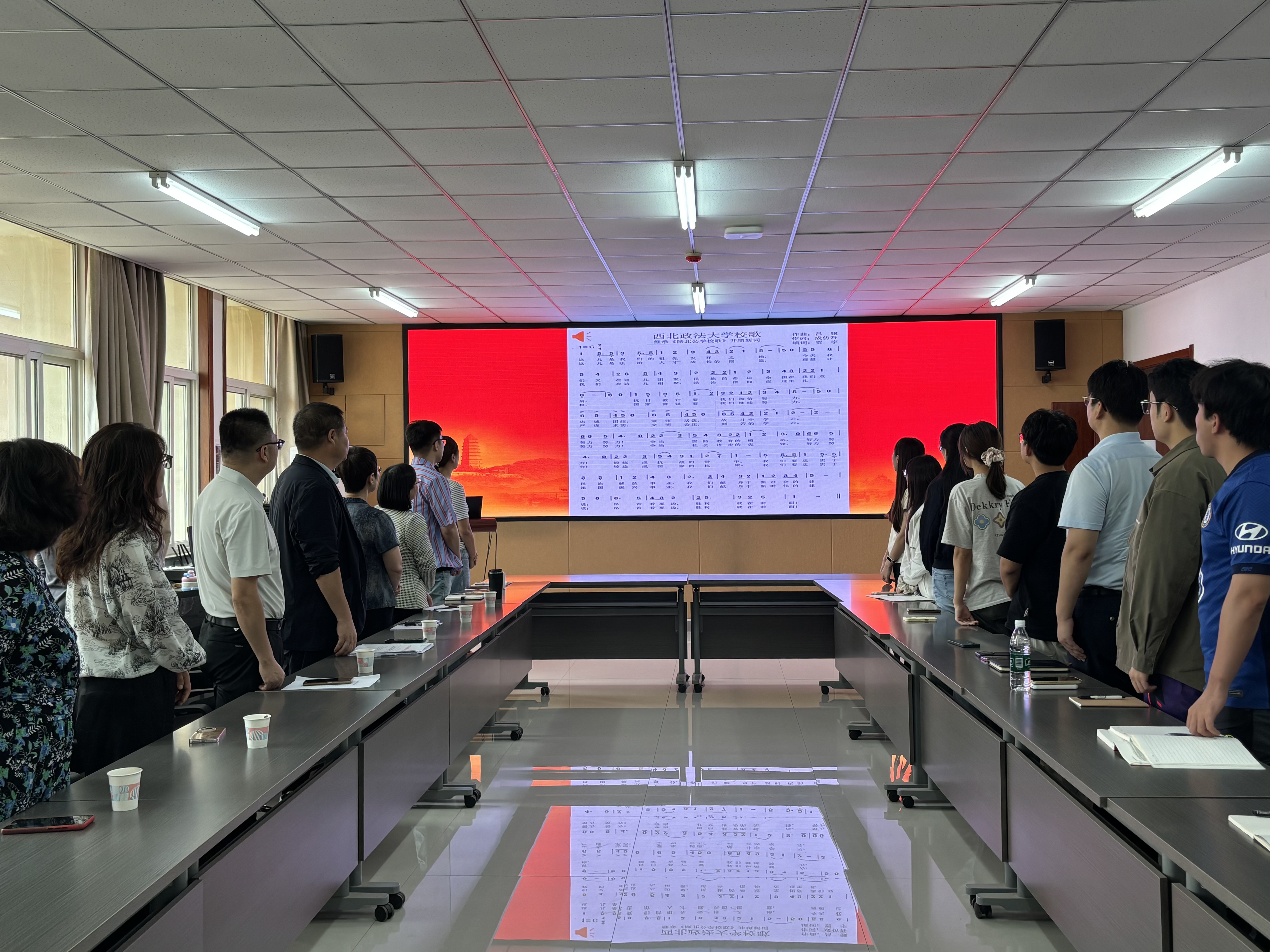典礼第五项,全体人员共同唱响校歌。