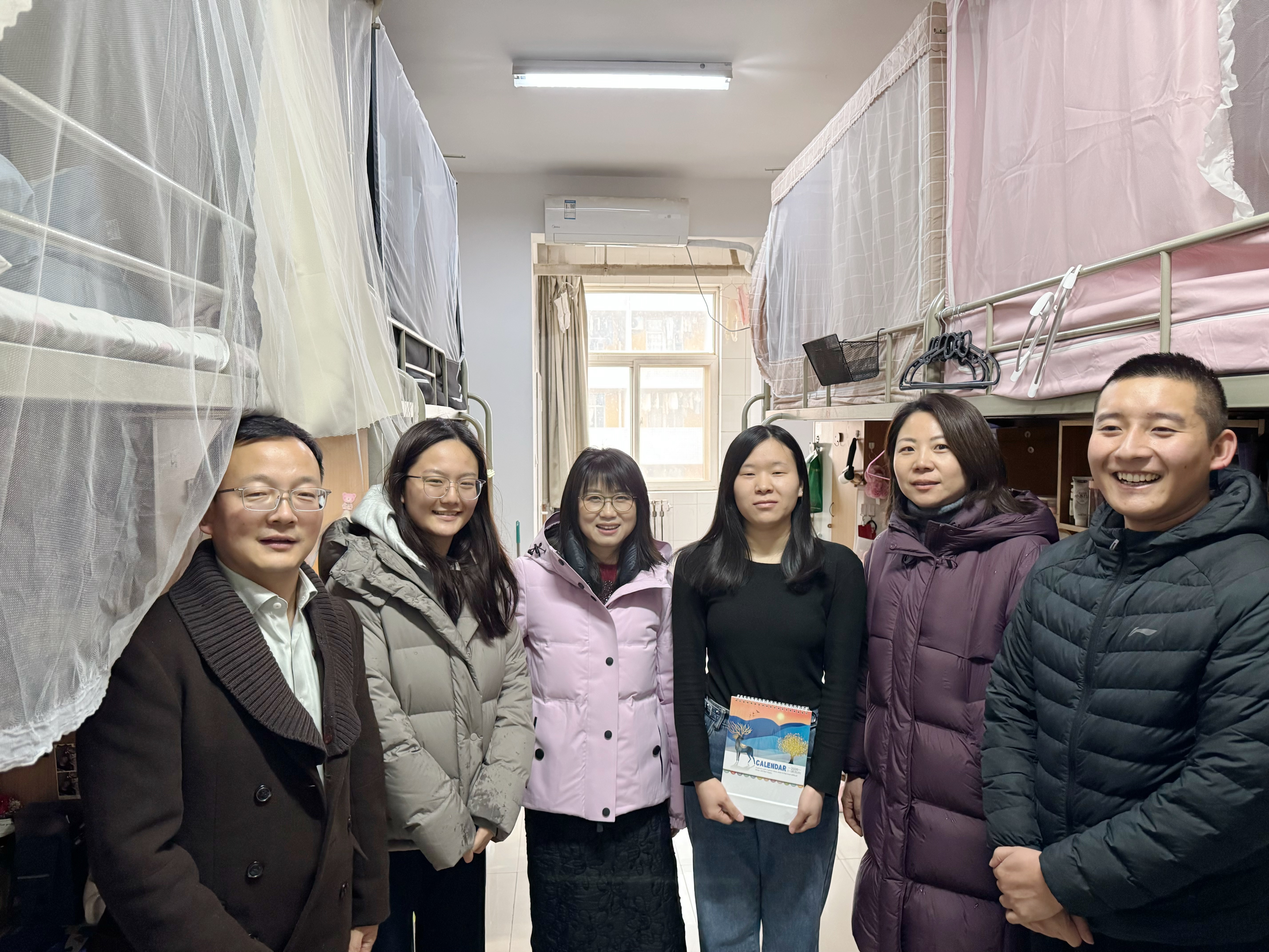 走访过程中,学院领导们向同学们致以新年祝福,送上新年礼物,并与大家亲切交谈,详细了解同学们的学习科研进展和日常生活情况,认真倾听大家在课程学习、科研安排及生活保障等方面的意见建议。其间,恰逢两位同学生日,老师们为其送上了生日蛋糕和真挚祝福,在新年将至之际为同学们增添了一份温暖与惊喜,宿舍内洋溢着温馨而愉快的节日氛围。