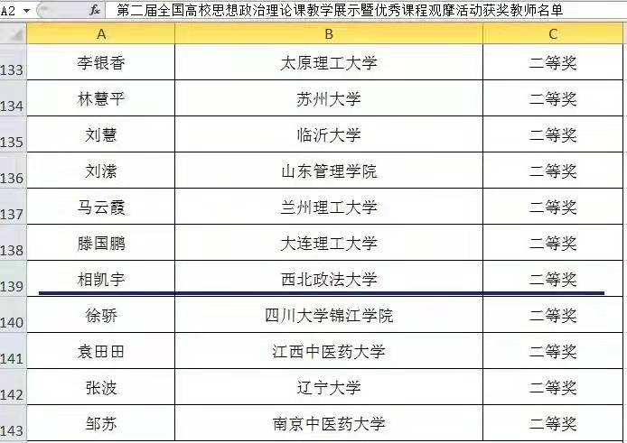 “成绩的取得离不开学校、学院和教研室的关心支持,离不开各位前辈和同仁的指导帮助,为比赛努力的日子弥足珍贵,信仰的力量、情怀的力量、思想的力量、逻辑的力量一次次让我对思政课有了更深的理解,上一堂好课不容易,上一门好课更是任重道远。讲好思政课,为学生的终身奋斗与幸福打开真理之窗,为立德树人的崇高事业贡献一个教师平凡也强大的力量!”获奖教师相凯宇表示。