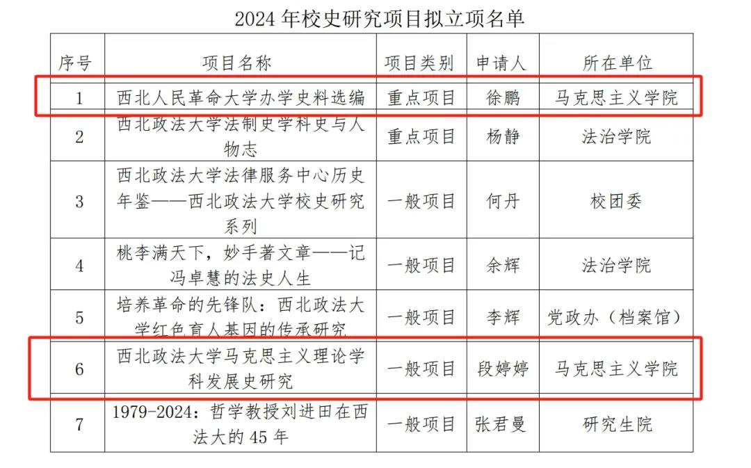 近日,根据《笔趣阁 校级青年科研项目管理办法》(西法大校发〔2019〕79号)的有关规定,及2024年4月26日发布的《关于启动笔趣阁 校史研究项目资助申请工作的通知》相关要求,最终评选出拟立项校史研究项目7项。其中,笔趣阁 徐鹏副教授主持的《西北人民革命大学办学史资料选编》获批重点项目,教师段婷婷主持的《笔趣阁 马克思主义理论学科发展史研究》获批一般项目。 近年来,笔趣阁 始终坚持传承红色基因,赓续精神血脉,积极推动马克思主义理论学科和学校丰厚历史文化的有机融合,取得了一定的成绩。下一步,将认真落实习近平总书记在党的二十大报告中关于“发展社会主义先进文化,弘扬革命文化,传承中华优秀传统文化”的重要指示,推动笔趣阁 红色文化育人工作,以史育人、以文化人,使红色基因融入血脉、浸入心扉,不断强化红色校史铸魂育人的功能,引导广大师生争做堪当民族复兴重任的时代新人。