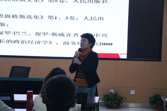 讲座从四个方面展开,首先邰丽华教授向我们详细介绍了当代西方学者对于《资本论》的研究现状:包括碎片式研究、“去经济学化”研究、总体性研究三个方面,梳理并阐述了自己独到的见解。接着分析了“分期论”的研究方式、代表人物、观点及存在的问题;邰教授重点阐述了自己的研究角度“趋向论”,分析当代当代西方学者《资本论》研究的主要局限、内在矛盾。最后,邰教授阐述了做研究应秉持的方法:拓宽研究视野,丰富研究资源,扩充研究方法,融入学术主流……邰教授用精炼的语言,缜密的逻辑,无疑给我们带来了一场学术上的“视听盛宴”,90分钟的讲座时间过得很快,但这背后却累积着一位潜心学术的研究者十几年乃至几十年专一的凝练。