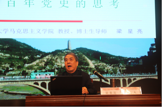 梁星亮教授以丰富详实的史料,生动活泼的语言,从中国共产党发展历程的简要回顾,中国共产党、新中国发展历程的思考与启示,历史的结论等三个方面,多维度、多层次的对党史、新中国史进行了讲解,使在座师生对中国共产党的探索史、奋斗史、创业史和发展史有了进一步的了解,对共产党人的初心和使命有了更深刻的理解和更全面的领会。梁星亮教授的报告既有前沿的理论讲解,又有鲜活的事迹案例,通融历史、观照历史,视野开阔、观点鲜明,使广大师生们深受启发和教育。