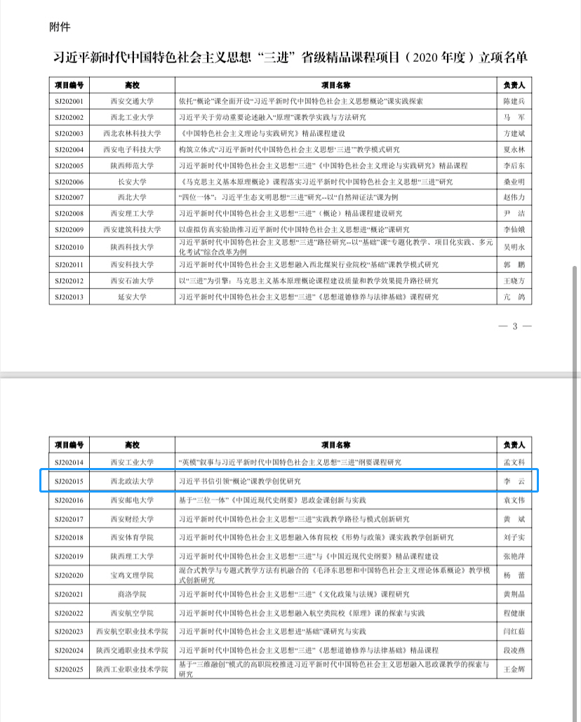 由笔趣阁 李云教授主持论证的《习近平书信引领“概论”课教学创优研究》项目成功立项中共陕西省委教育工委关于习近平新时代中国特色社会主义思想“三进”省级精品课程项目(2020年度),获批经费2万元。