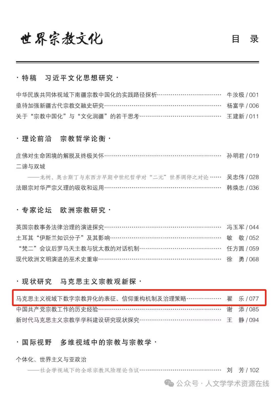 教师翟乐博士的论文《马克思主义视域下数字宗教异化的表征、信仰重构机制及治理策略》刊于《世界宗教文化》2025年第6期。
